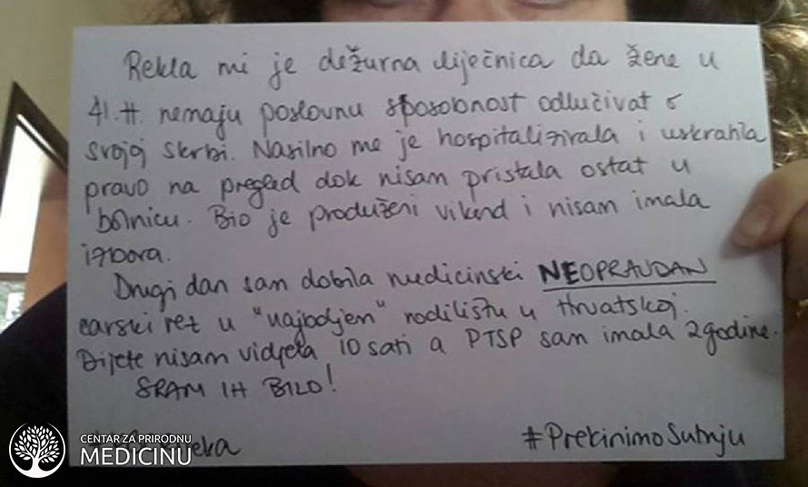 Žene iz cele Hrvatske javljaju svoja iskustva, a mnoge od njih doživele su psihičko i fizičko zlostavljanje, ponižavane su i tretirane kao komad mesa, zbog čega se većina njih od straha više ne odlučuje na drugo dete.