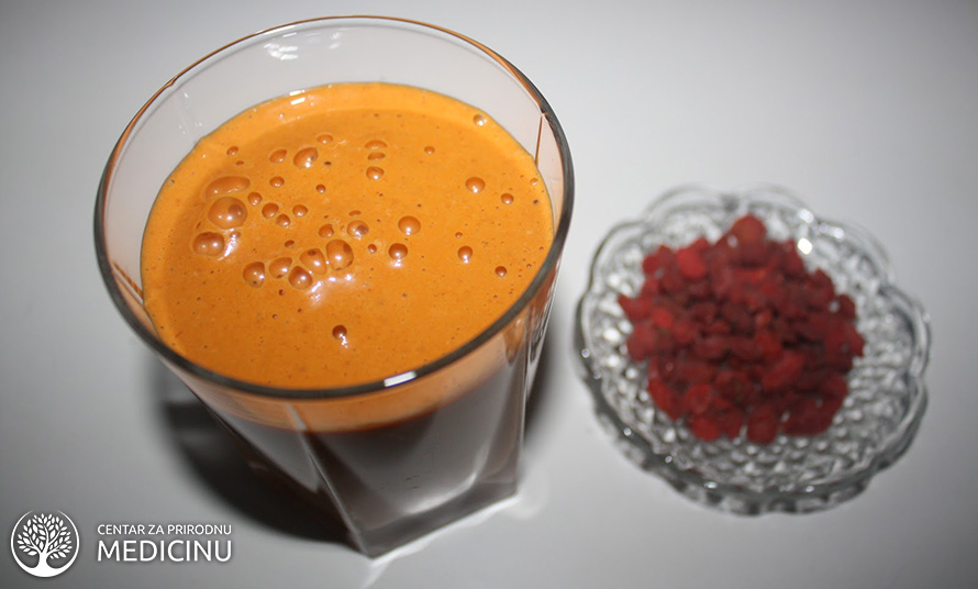 Gusti, hranljivi smuti sa zamrznutom bananom, kokosom, godži bobicama, maka prahom i obiljem proteina za savršen doručak ili popodnevnu užinu. I godži bobice i koren make su poznati po svom regenerativnom svojstvu i mogućstvu da potpomognu balansiranje hormona, i to pogotovo kod žena.